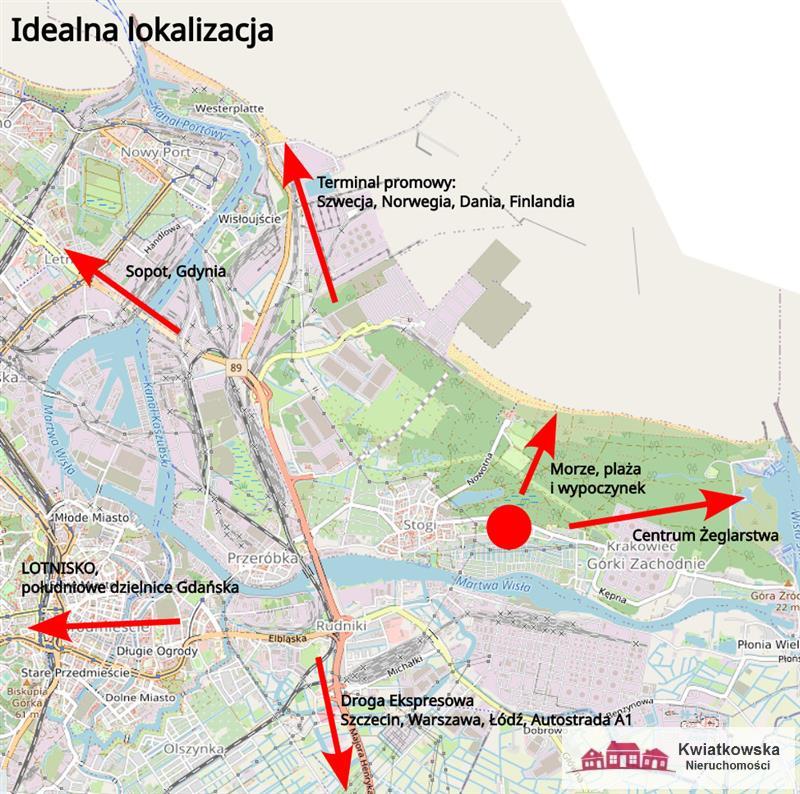 Obiekt położony jest w dzielnicy Krakowiec- Górki Zachodnie, jest osiedlem administracyjnym Gdańska położonym we wschodniej części miasta, na wschodzie Wyspy Portowej. W środkowej części dzielnicy znajduje się kanał Łacha. Krakowiec otoczony jest od północy wodami Zatoki Gdańskiej, od południa Martwa Wisłą , a od wschodu sąsiaduje z Górkami Zachodnimi. Od strony zachodniej sąsiaduje z osiedlem administracyjnym Stogi. Północny obszar dzielnicy zajmuje las wydmowy zwany lasem Miejskim, Jezioro Bursztynowe i Zielone Wyspy. Połączenie z centrum Gdańska umożliwiają autobusy komunikacji miejskiej nr 111, 158 oraz N 8 oraz tramwaje nr 8 i 9 . Największą zaletą jest bliskość natury, morza, przystań jachtowa, sklepy, a także bliskość Śródmieścia.